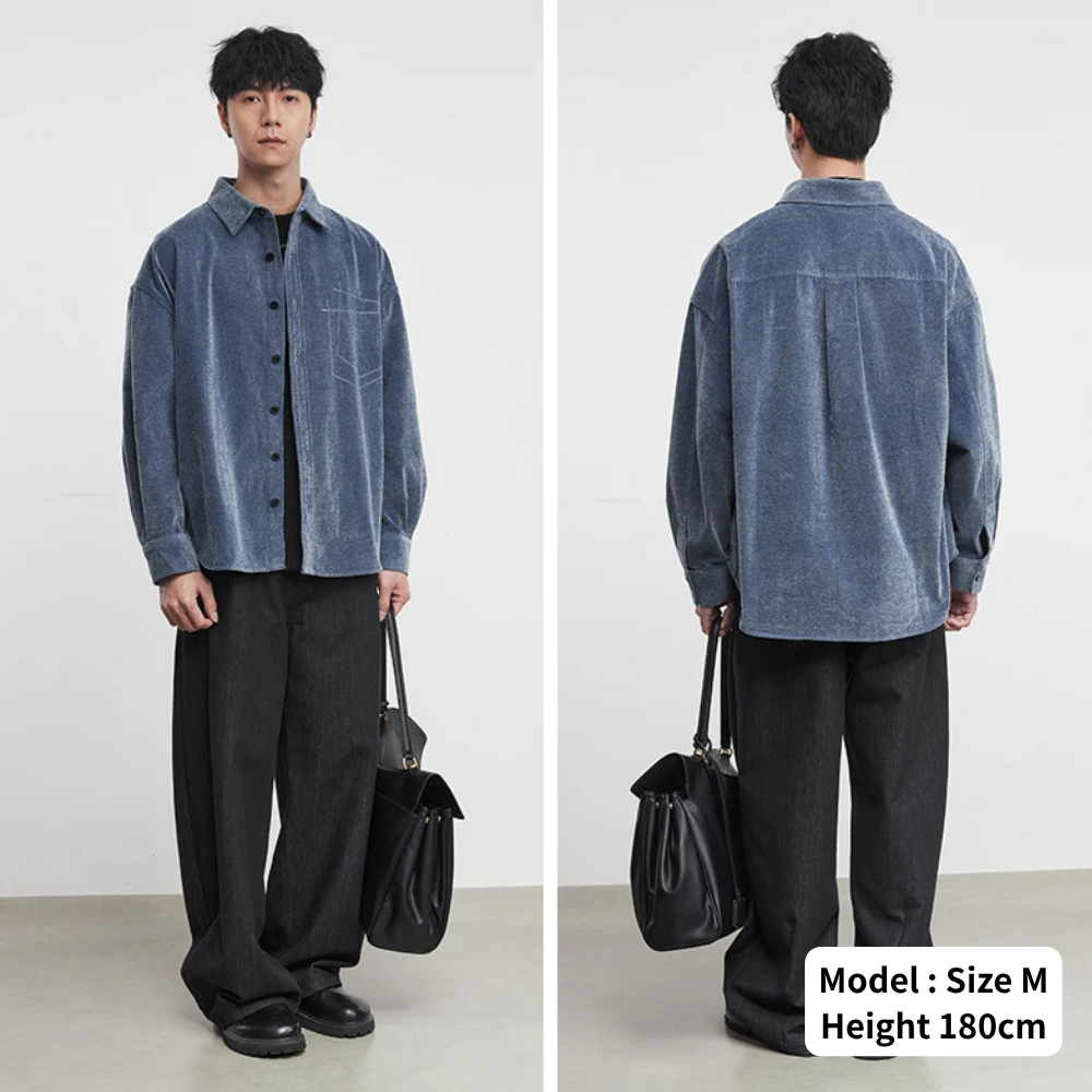 光沢感が魅力の、ゆったりシルエットのシャツジャケット。柔らかくライトな着心地ながら、深みのあるブルーの色合いと独特の風合いが存在感を放ちます。生地は光の当たり方によって表情が変わるニュアンスのある質感が特徴。オーバーサイズの肩落ちシルエットが抜け感を生み、インナーを選ばずラフに羽織るだけでスタイリングが決まる万能アイテムです。フロントの大きめ胸ポケットはステッチワークで魅せるデザインとなっており、シンプルながらも個性を感じさせるアクセントに。サイドのカーブをつけた裾が、動きに合わせてやわらかく揺れ、自然なドレープ感を演出します。