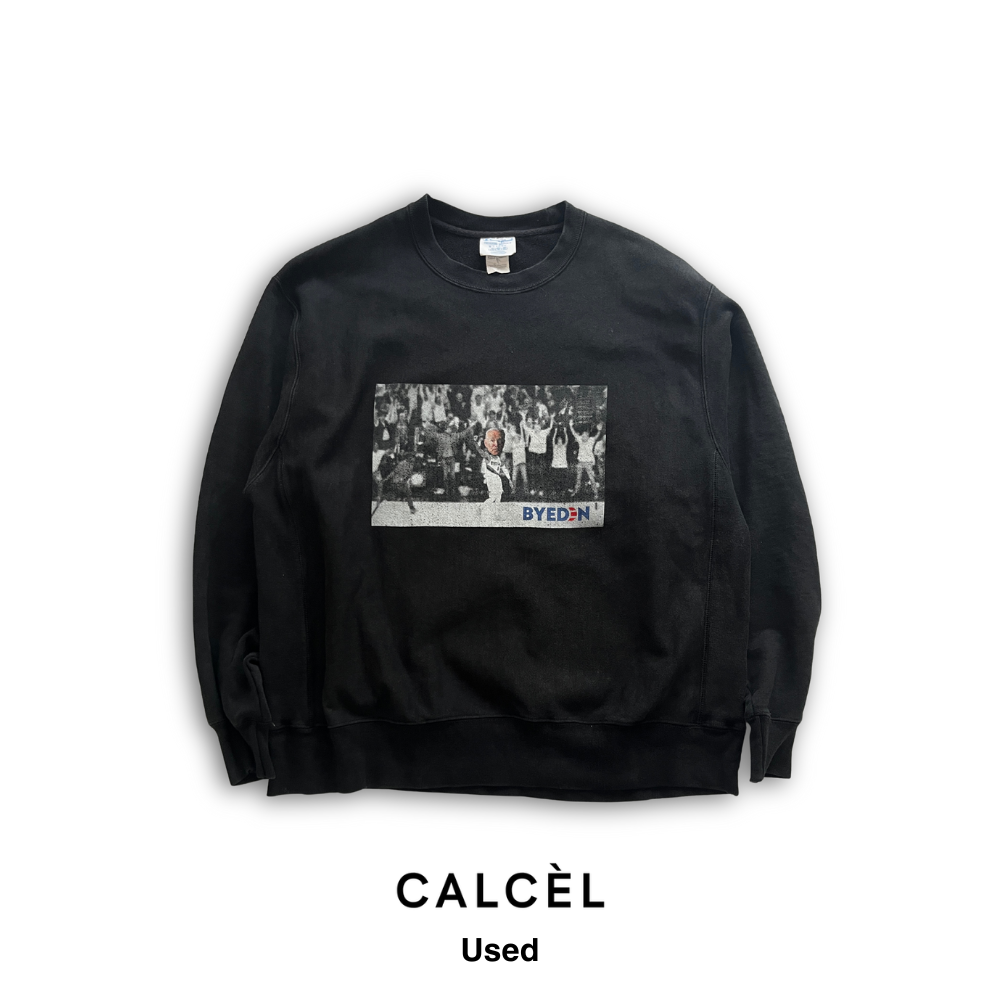 前面にジョー・バイデンの顔をコラージュしたプリントがされたチャンピオンのスウェットです。下にはBYEDENとプリントされており、これは英語の"Bye"と"Biden"をかけた造語と考えられます。