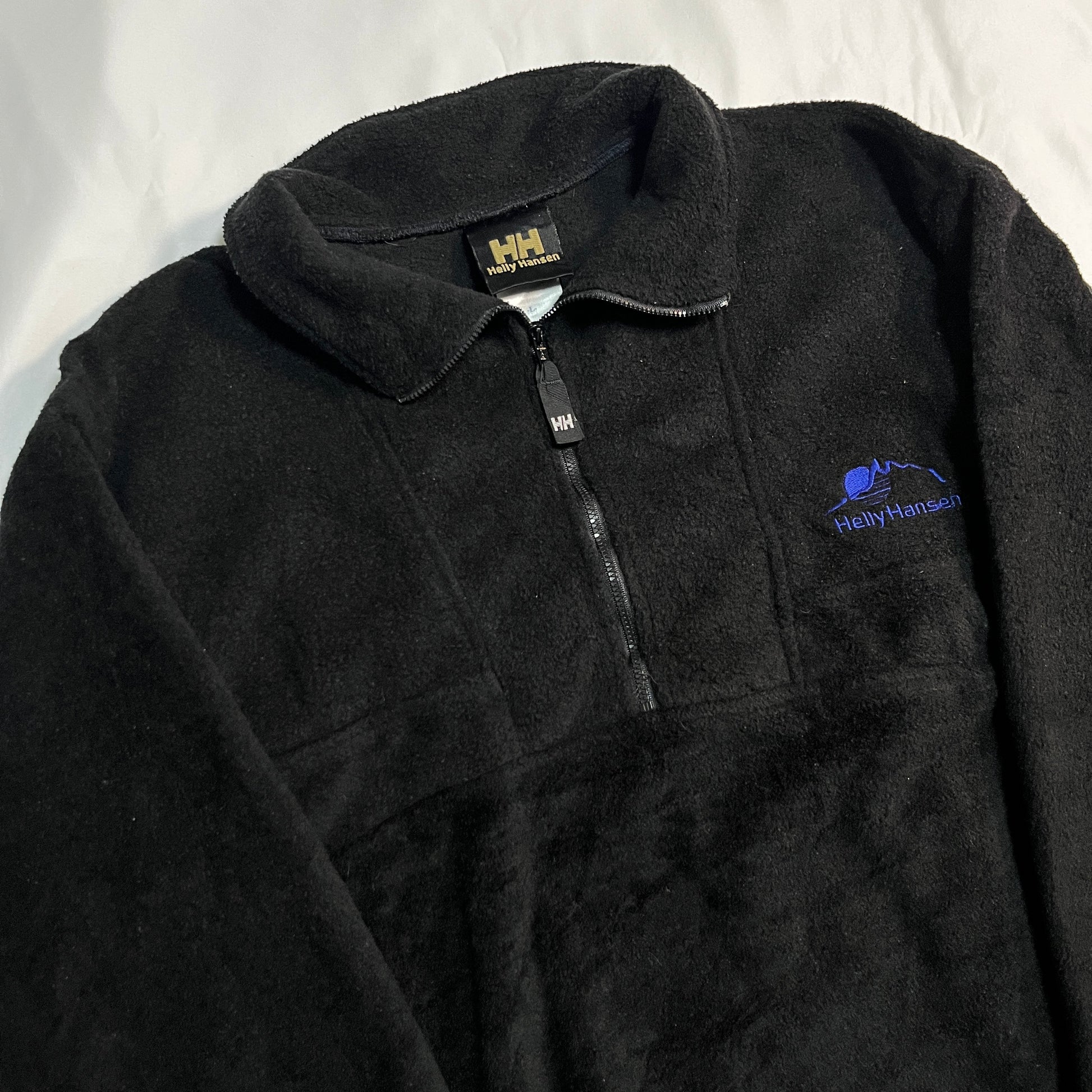 90年代のHELLY HANSENを象徴とする,黒地に金のフォントデザインが刻まれた,王道フリース.