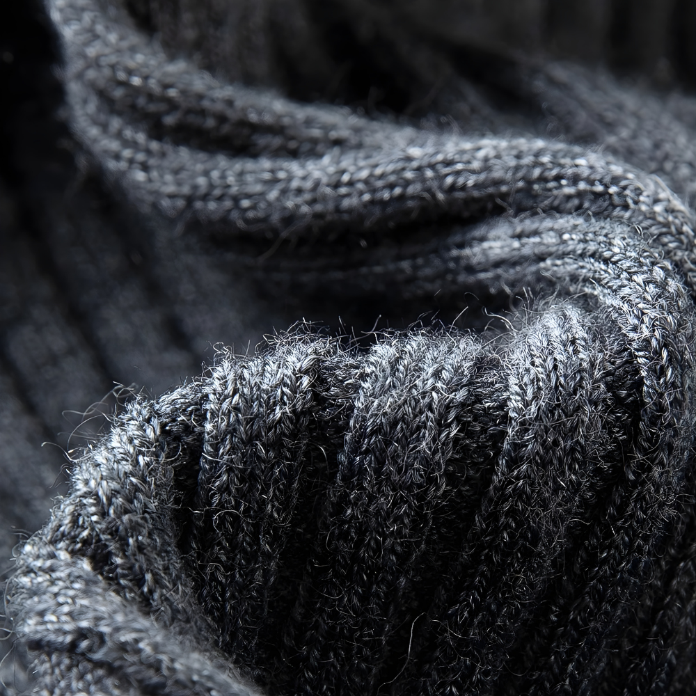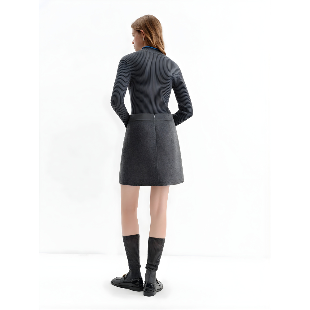 ダークグレーに映える鮮烈なブルーのレイヤードは、まるで計算されたかのような知的なアクセントです。柔らかな肌触りで、心地よさとスタイルアップを両立させてくれますよ!😌💕