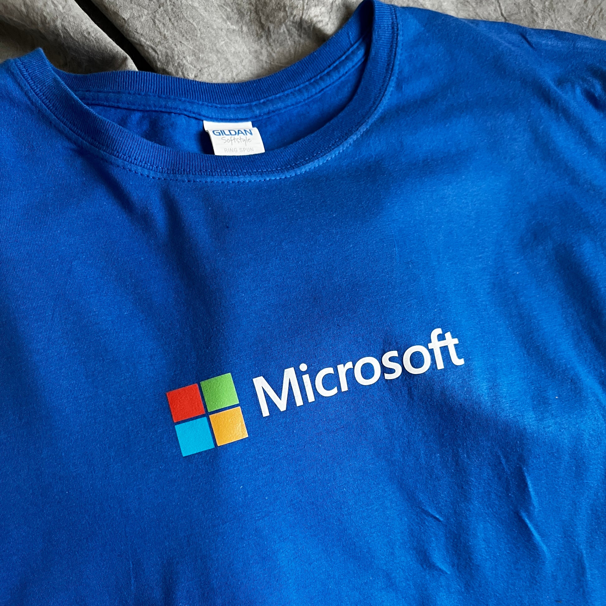 Microsoftのロゴが中心にプリントされた企業Tシャツです.