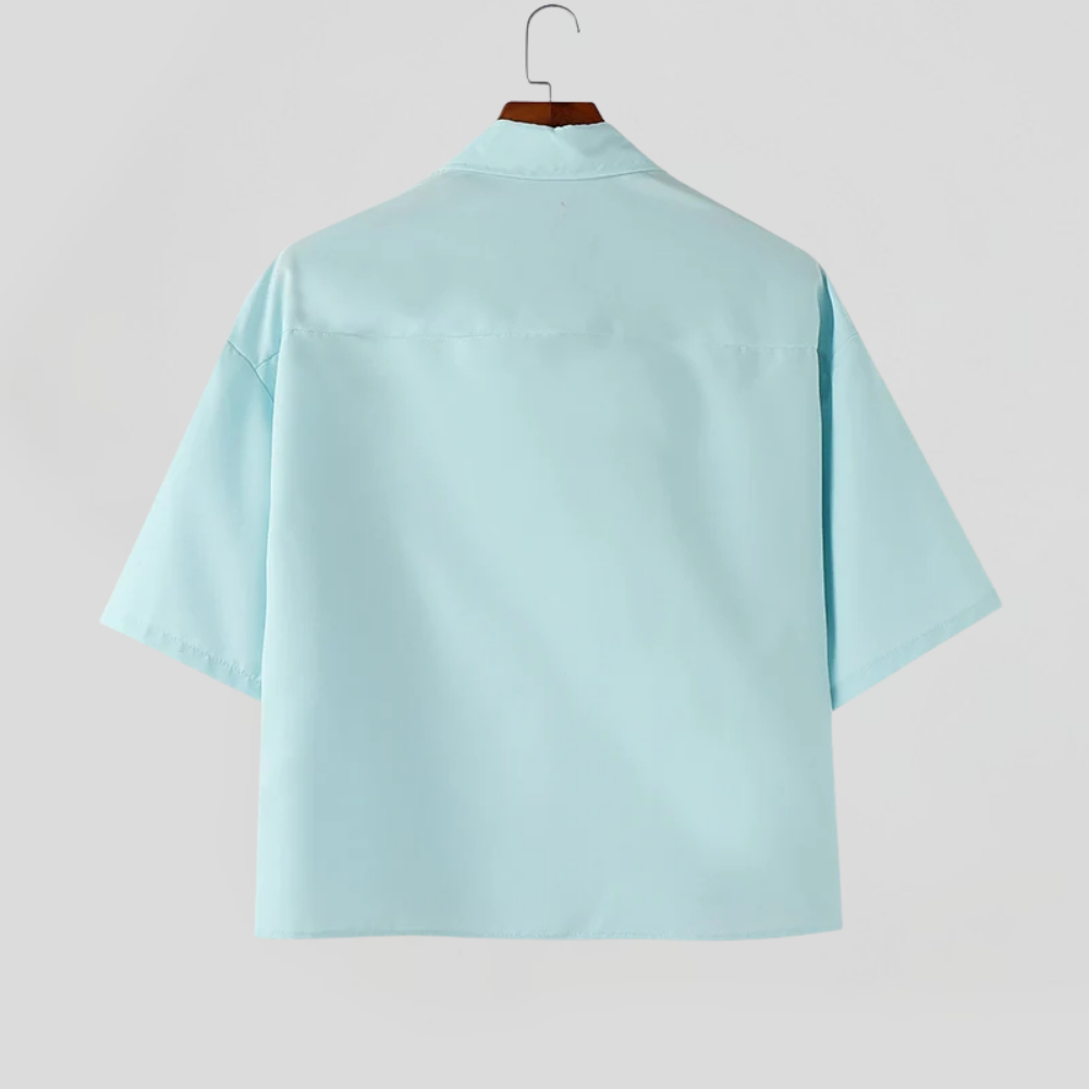 短丈シルエットが際立つ、軽やかな半袖シャツ。