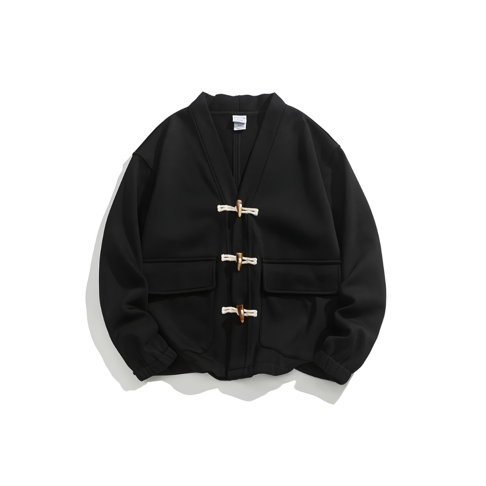 緻密に計算された和の意匠と、クラシックなトグルボタンが織りなす非凡なデザイン性が、装いの格を高めます。