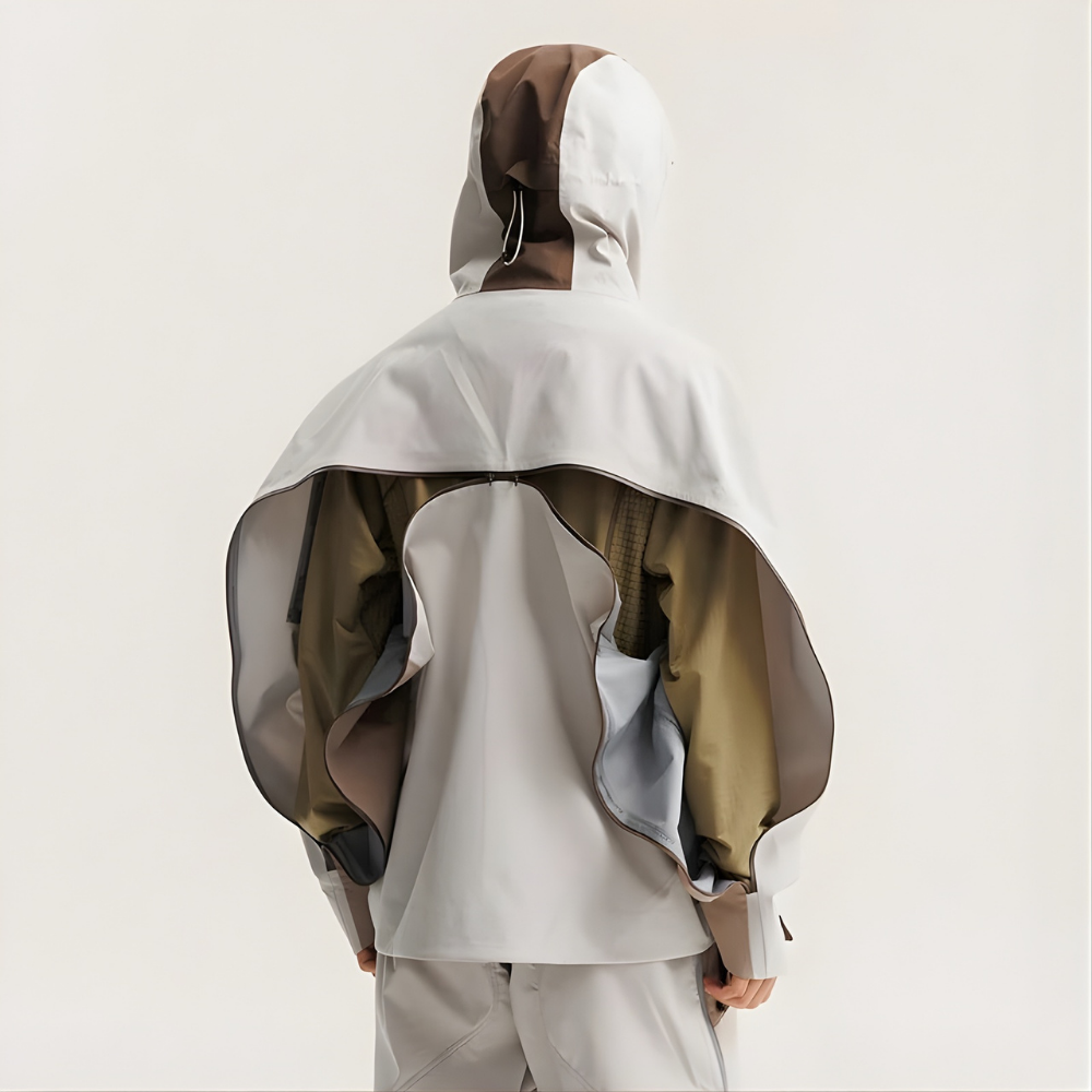 緻密に計算された異色のパネル切り替えが、アウトドアウェアに前衛的な芸術性と、圧倒的なモダン・エッセンスを注入。